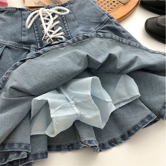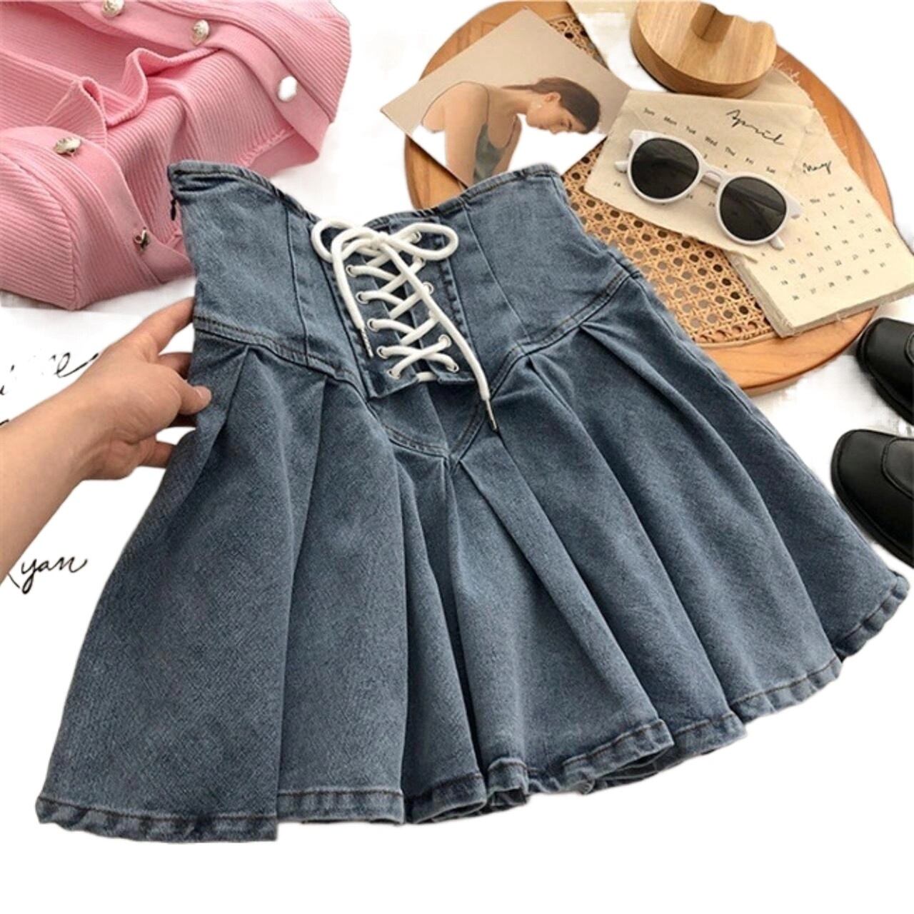 Waist tie denim skirt